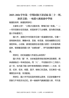 2025-2026秋季学年第一学期学生国旗下演讲稿(22周):第21周,一碗腊八粥,浓浓中华情-腊八节.docx