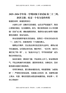 2025-2026秋季学年第一学期学生国旗下演讲稿(22周):第22周,度过一个有力量的寒假-寒假.docx