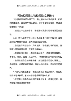 预防校园暴力和校园欺凌承诺书.docx