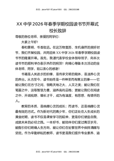 XX中学2026年春季学期校园读书节开幕式校长致辞.docx