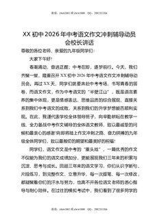 XX初中2026年中考语文作文冲刺辅导动员会校长讲话.docx
