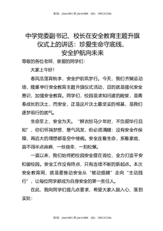 中学党委副书记,校长在安全教育主题升旗仪式上的讲话:珍爱生命守底线,安全护航向未来.docx