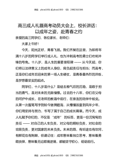 高三成人礼暨高考动员大会上,校长讲话:以成年之姿,赴青春之约.docx
