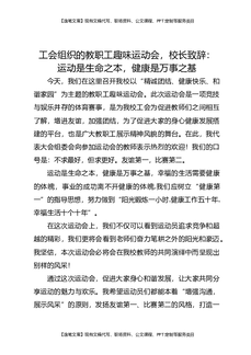 工会组织的教职工趣味运动会,校长致辞:运动是生命之本,健康是万事之基.docx