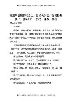 高三毕业班教师会上,副校长讲话:强调备考要“三度回归”:教材、课本、基础.doc