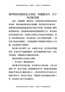 高中校长在家长会上讲话:穷富都三代,三十年河东河西.docx
