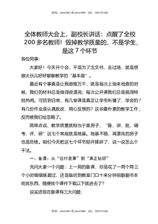 全体教师大会上,副校长讲话:点醒了全校200多名教师!毁掉教学质量的,不是学生,是这7个环节.doc