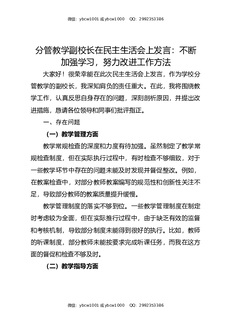分管教学副校长在民主生活会上发言:不断加强学习,努力改进工作方法.docx