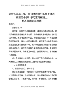 副校长在高三第一次月考质量分析会上讲话:高三无小事!宁可累死在路上,也不能闲死在原地!.doc