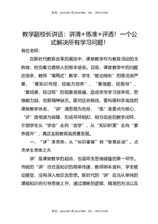 教学副校长讲话:讲清,练准,评透!一个公式解决所有学习问题!.doc