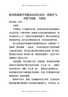 教学质量提升专题会议校长讲话:两翼齐飞,才能飞得高,飞得远.doc