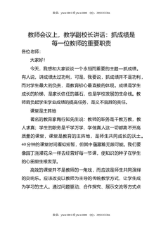 教师会议上,教学副校长讲话:抓成绩是每一位教师的重要职责.doc