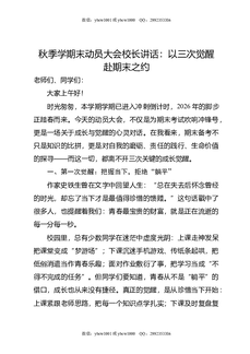 秋季学期末动员大会校长讲话:以三次觉醒赴期末之约.doc