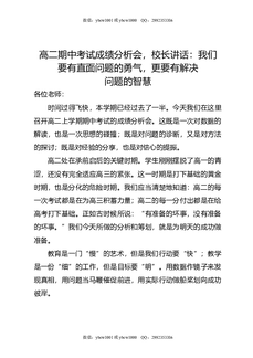 高二期中考试成绩分析会,校长讲话:我们要有直面问题的勇气,更要有解决问题的智慧.doc