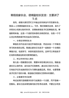寒假前家长会,德育副校长发言:主要讲了5点.docx