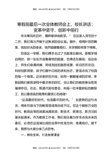 寒假前最后一次全体教师会上,校长讲话:变革中坚守,创新中前行.docx