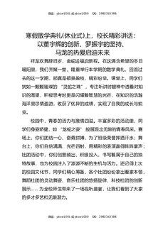 寒假散学典礼(休业式)上,校长精彩讲话:以董宇辉的创新,罗振宇的坚持,马龙的热爱启迪未来.docx