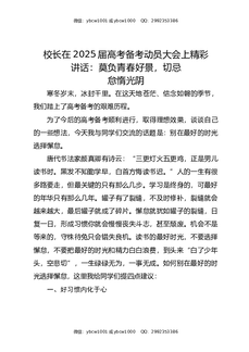 校长在2025届高考备考动员大会上精彩讲话:莫负青春好景,切忌怠惰光阴.docx