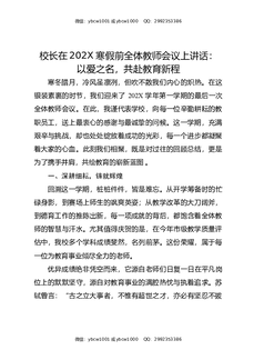 校长在202X寒假前全体教师会议上讲话:以爱之名,共赴教育新程.docx
