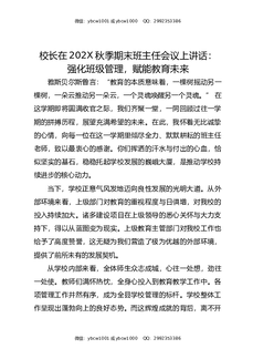 校长在202X秋季期末班主任会议上讲话:强化班级管理,赋能教育未来.docx