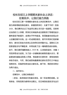 校长在初三上学期期末家长会上讲话:在寒风中,让我们奋力奔跑.docx