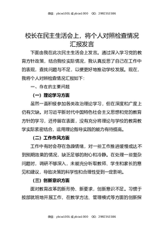 校长在民主生活会上,将个人对照检查情况汇报发言.docx