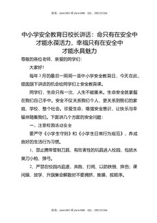 中小学安全教育日校长讲话:命只有在安全中才能永葆活力,幸福只有在安全中才能永具魅力.docx