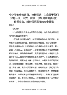中小学安全教育日,校长讲话:生命属于我们只有一次,平安,健康,快乐成长需要我们珍爱生命,时刻保持高度的安全警觉.docx
