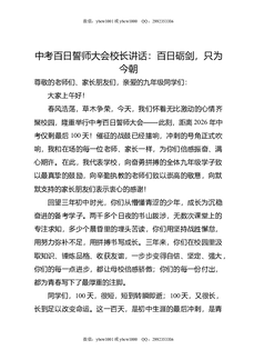 中考百日誓师大会校长讲话:百日砺剑,只为今朝.docx