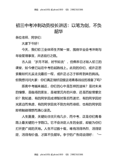 初三中考冲刺动员校长讲话:以笔为剑,不负韶华.docx