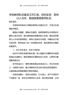 学校教师队伍建设工作汇报,校长发言:坚持以人为本,锻造高素质教师队伍.docx