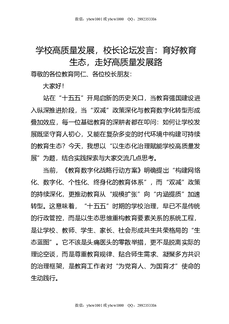 学校高质量发展,校长论坛发言:育好教育生态,走好高质量发展路.docx