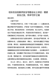 校长在全校教师安全专题会议上讲话:绷紧安全之弦,筑牢守护之墙.docx