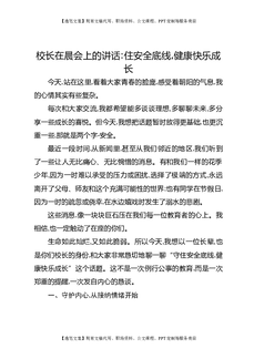 校长在晨会上的讲话:住安全底线,健康快乐成长.docx