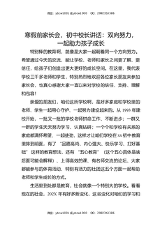 寒假前家长会,初中校长讲话:双向努力,一起助力孩子成长.docx