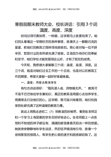 寒假前期末教师大会,校长讲话:引用3个词温度,高度,深度.docx