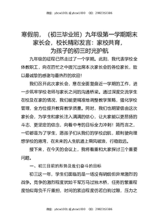 寒假前(初三毕业班)九年级第一学期期末家长会,校长精彩发言:家校共育,为孩子的初三时光护航.docx