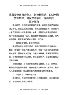 寒假安全教育大会上,副校长讲话:时刻牢记安全知识,增强安全意识,提高自我保护能力.docx