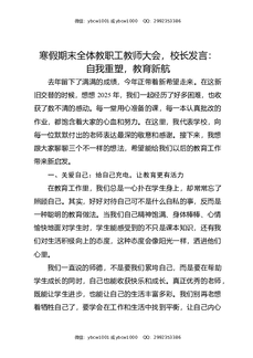 寒假期末全体教职工教师大会,校长发言:自我重塑,教育新航.docx