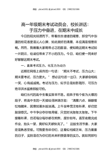 高一年级期末考试动员会,校长讲话:于压力中奋进,在期末中成长.docx