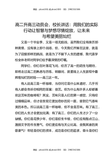 高二升高三动员会,校长讲话:用我们的实际行动让智慧与梦想尽情绽放,让未来与希望美丽灿烂.docx