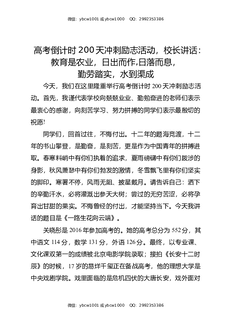 高考倒计时200天冲刺励志活动,校长讲话:教育是农业,日出而作,日落而息,勤劳踏实,水到渠成.docx