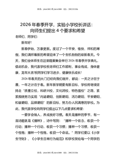 2026年春季开学,实验小学校长讲话:向师生们提出4个要求和希望.doc