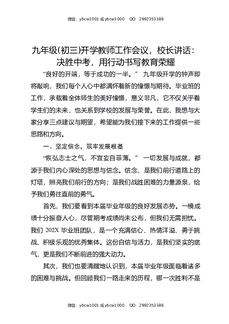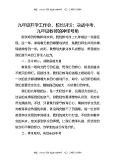 九年级开学工作会,校长讲话:决战中考,九年级教师的冲锋号角.docx
