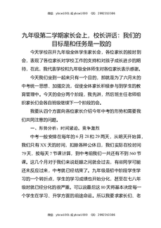 九年级第二学期家长会上,校长讲话:我们的目标是和任务是一致的.docx