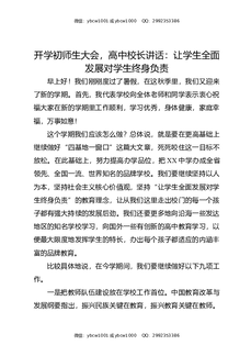 开学初师生大会,高中校长讲话:让学生全面发展对学生终身负责.docx