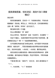 提高课堂质量,校长讲话:高效6加1课堂模式!.doc