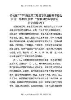 校长在202X高三第二轮复习质量提升专题会讲话:高考倒计时!二轮复习的6字密码,开启辉煌之门.docx