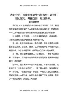 表彰会后,迎接新年高中校长致辞:让我们凝心聚力,开拓创新,继往开来,再创辉煌.docx