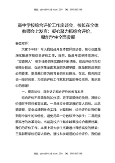 高中学校综合评价工作座谈会,校长在全体教师会上发言:凝心聚力抓综合评价,赋能学生全面发展.docx